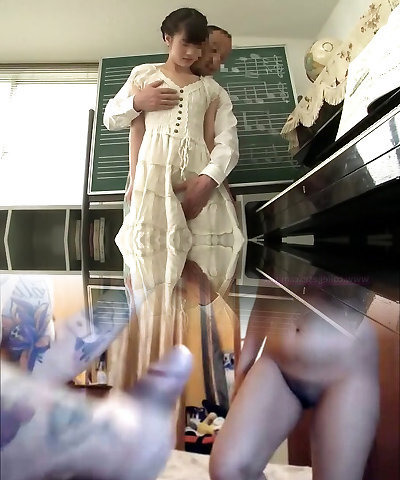 18-year-senior slender Japanese beauty idol, creampie sex with blowjob and shaved pussy. Uncensored