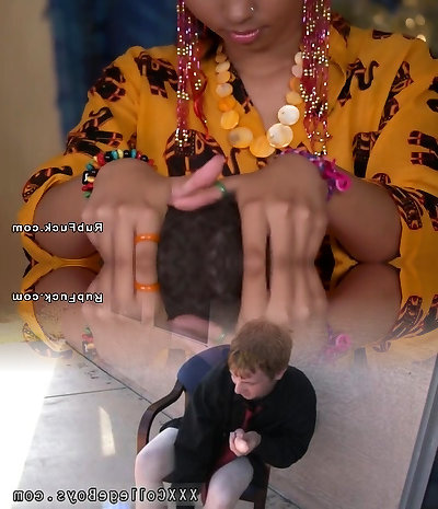 Mingled Race Ebony-Asian Cracker Honey Gold Bounces On Big White Spear