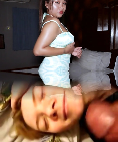 Accidentally woke up by a Horny Asian teen Dame while jerking off and oral pleasure POV