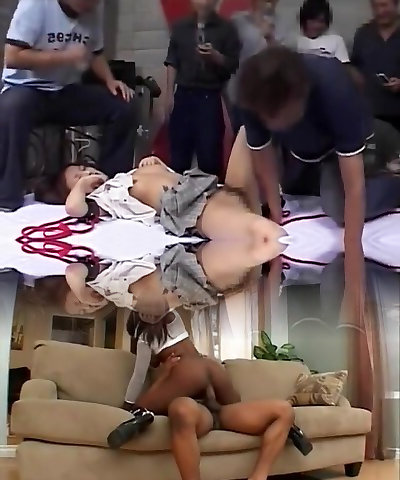 Unbelievable Japanese AV Model plays slave in nasty group action