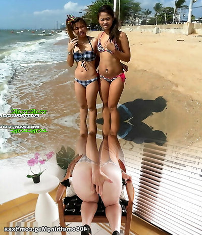 Amateur Thai babe with C-cup boobs Cartoon is picked up on the beach