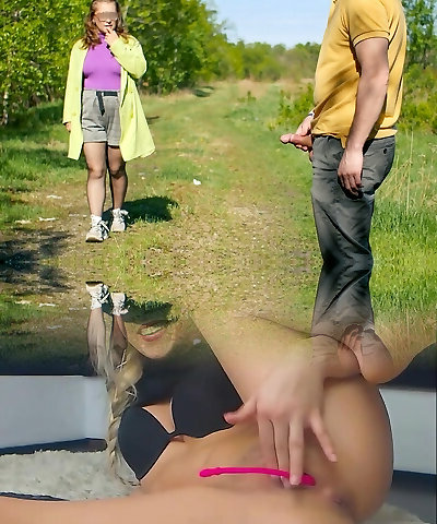 Divine hotty plays with stranger's beef whistle in the outdoors