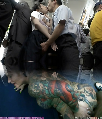 Hitomi Tanaka pleases a guy with oral and breast banging in a crowded bus
