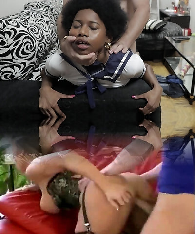 Insane ebony teen wearing Japanese schoolgirl uniform fucks like a pro